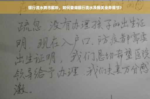银行流水是可以跨市办理的,但具体办理方式和规定可能因银行和具体业务而异,在办理过程中,客户需提前了解相关银行的业务规定,准备好相关资料,并注意保护个人信息,希望通过本文的解析,能帮助大家更好地了解银行流水及跨市办理的相关事项。