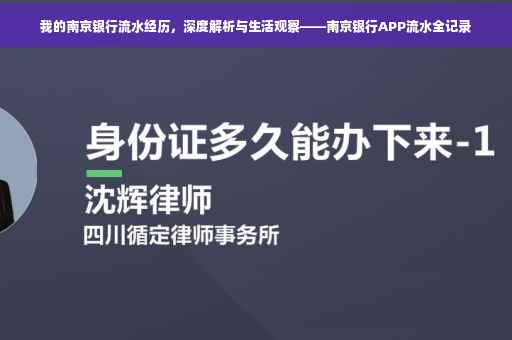 摘要:本文介绍了作者的南京银行流水经历,通过深度解析与生活观察,探讨南京银行app流水的细节。文章将阐述作者在南京银行流水记录中的体验,包括账户变动、交易明细等方面,并结合生活实际情况进行分析,旨在为读者提供有关南京银行流水的重要信息和见解。
