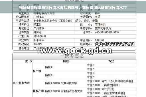 摘要:基金投资细节揭秘,银行流水记录的重要性及其在基金投资中的应用。本文将介绍如何通过银行流水查询基金投资情况,包括如何查看银行流水记录、如何分析记录中的投资细节等。帮助投资者更好地了解基金投资背后的细节,提高投资效率和风险管理能力。