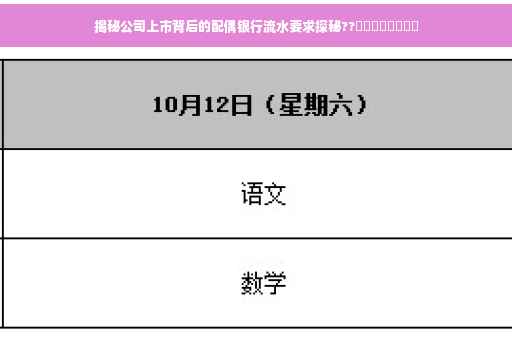 摘要:公司上市过程中,配偶银行流水成为备受关注的话题。背后的故事揭示了上市公司为了遵守相关法规和监管要求,需要对高级管理人员的财务状况进行审查,其中配偶的银行流水成为审查的重要内容之一。了解配偶银行流水要求的目的和意义,有助于更好地理解公司上市过程中的相关要求和流程。