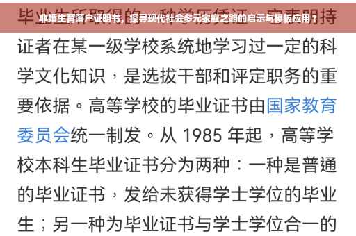 摘要:随着现代社会多元家庭的出现和发展,非婚生育现象逐渐受到关注。非婚生育落户证明书作为证明孩子身份和落户的重要文件,反映了现代社会对于家庭结构的开放和包容态度。本文旨在介绍非婚生育落户证明书模板,并探讨现代多元家庭之路的走向,展示社会对于家庭观念的转变与进步。