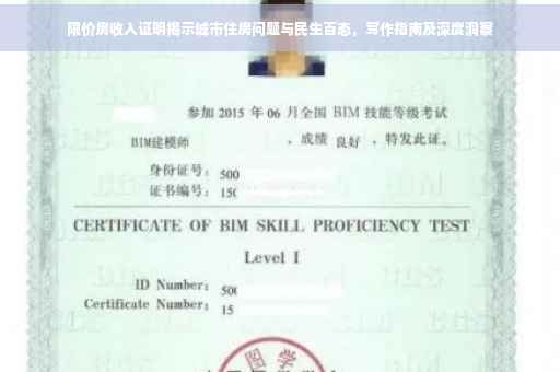 摘要:本文探讨了城市住房问题与民生百态,通过限价房街道办收入证明这一角度进行阐述。文章指出,限价房政策对于解决城市住房问题具有重要意义,而收入证明是申请限价房的重要证明材料。本文将介绍如何撰写限价房街道办收入证明,同时反映城市住房问题的复杂性和多样性,以及民生百态的实际情况。