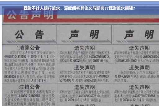 随着金融市场的不断发展和个人财富的日益增长,越来越多的人开始关注理财的重要性,在这个过程中,银行流水作为理财活动中的一项重要指标,对于个人财务管理具有不可忽视的作用,近年来出现了一个新的概念——“理财不计入银行流水”,这在一定程度上改变了人们对理财活动的传统认知,本文将深度解读理财不计入银行流水的含义及其对理财活动的影响。