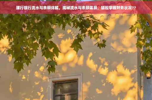 摘要:本文介绍了建行银行流水与余额的详细情况,帮助读者掌握自己的财务状况。文章指出,银行流水和余额之间存在差异的情况,并解释了原因。通过阅读本文,您将更好地理解个人银行账户的财务状况,有效管理个人财务。