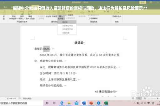 摘要:中介教唆开假收入证明是一种违法行为,背后隐藏着严重的风险。这种行为不仅违反了相关法律法规,还可能导致个人信用受损、法律责任承担等后果。通过深入了解中介背后的动机和风险,我们可以更好地保护自己的合法权益,避免陷入不必要的法律风险。