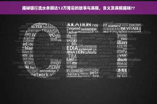 关于银行流水余额达12万的话题在网络上引起了广泛的热议,很多人对于这个数字背后所代表的含义以及背后的故事充满好奇,作为一名自媒体作者,我经过深入调查,揭示了一些鲜为人知的细节,我将带您走进这个神秘的数字背后,探寻其真相。