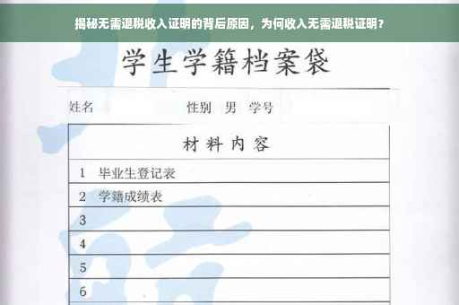 在当今社会,随着经济的发展和个人收入的增加,税务问题成为了人们关注的焦点之一,在某些情况下,我们可能会遇到无需退税收入证明的情况,本文将围绕这一现象展开探讨,分析其中的原因,并帮助读者更好地理解税务政策和相关规定。