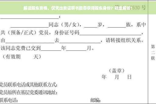 在投资领域,股东资格是一个核心议题,拥有股东资格意味着投资者可以参与公司决策、享受分红等权益,关于股东资格的认定并非简单明了,尤其是在仅有出资证明书的情况下,本文将深入探讨这一问题,并解读股东资格的真正含义。
