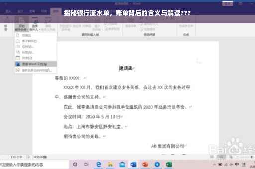 在日常生活中,我们经常会听到“银行流水单”这个词,特别是在办理贷款、信用卡等金融业务时,银行流水单往往成为重要的证明材料之一,究竟什么叫银行流水单?它又有哪些作用呢?本文将为您详细解析银行流水单的概念、作用以及如何获取和使用。