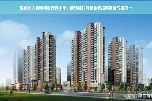 在当今社会,无论是求职、贷款还是办理信用卡,收入证明与银行流水单都是不可或缺的重要文件,它们作为个人财务状况的直观展现,为我们提供了关于个人收入、支出及资金流转情况的详细信息,本文将详细介绍收入证明与银行流水单的作用、内容及其解读方法,帮助大家更好地了解自己的财务状况。