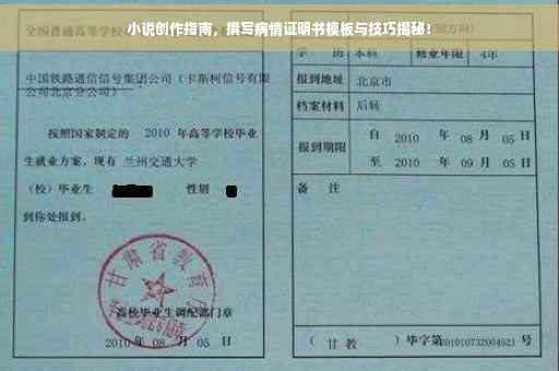 在小说创作中,病情证明书的撰写是一项重要而又具有挑战性的任务,它不仅需要精确描述角色的健康状况,还需要通过文字构建情感氛围,推动情节发展,本文将指导你如何在小说的创作中撰写一个真实的、引人入胜的病情证明书。
