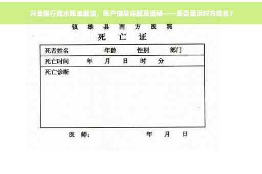 摘要:本文将探讨兴业银行流水账单中对方账户信息的解读与揭秘,主要关注用户关心的问题,如流水是否显示对方姓名等详细信息。通过解析银行流水账单,帮助读者了解如何正确查看和理解账户交易记录,确保个人财务安全。