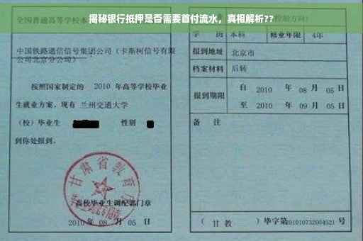 文章解析关于银行抵押是否需要首付流水的问题。内容指出,在办理银行抵押时,是否需要提供首付流水视具体情况而定。一般情况下,如果抵押物价值足够覆盖贷款金额,银行可能不要求提供首付流水证明。但某些情况下,银行为了评估借款人的还款能力和资金状况,可能会要求提供首付流水证明。文章旨在为读者解答疑惑,更好地了解银行抵押的相关要求。