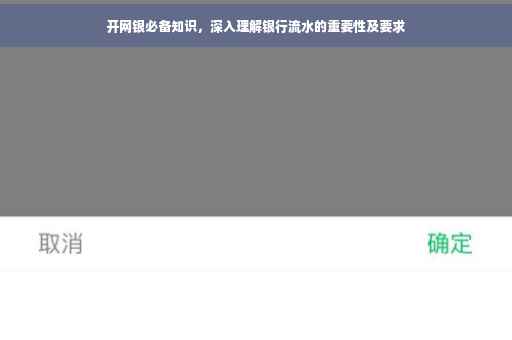随着互联网的深入发展,网上银行(网银)已经成为我们日常生活中不可或缺的一部分,通过网银,我们可以轻松进行转账、支付账单、查询余额等操作,极大地提升了我们的生活质量,在开通网银的过程中,一个重要的环节常常被人们忽视,那就是银行流水,本文将详细介绍银行流水的概念、作用,以及相关的注意事项,帮助大家更好地了解开通网银时为何要有银行流水的要求。