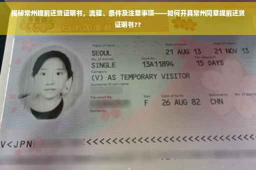 摘要:本文将介绍常州提前还贷证明书的流程、条件和注意事项。读者将了解到如何申请提前还贷证明书,包括所需材料和步骤。本文还将揭示常州同意提前还贷证明书的开具地点,帮助读者顺利完成提前还贷手续。文章内容简洁明了,字数控制在100-200字以内。
