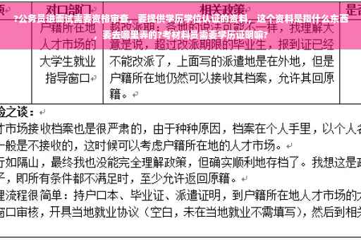 我也是今年公考进面,题主未说明自己是否是应届毕业生,那么我从两个情况来答: 已经毕业的,资料有学位证,毕业证书和在学信网上注册并打印的学籍证明(这个需要缴纳1块钱)以及准考证, 对于尚未发放毕业证、学位证书的高校毕业生由学校教务部门出具相关证明,具体你可以主动联系自己的导员具体了解,导员对于这些东西是再熟悉不过的,这样比较可靠。