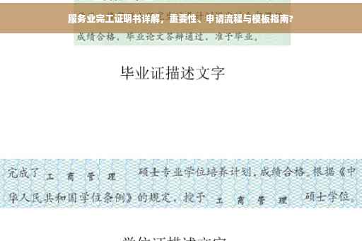 在当今社会,随着服务业的快速发展,服务业完工证明书在各个领域的应用越来越广泛,本文旨在详细介绍服务业完工证明书的重要性、种类、申请流程以及注意事项,帮助广大读者更好地了解和使用这一重要文件。