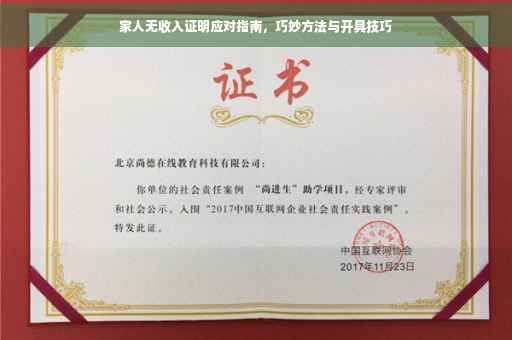 摘要:面对家人没有收入证明的挑战,可以采取多种方式巧妙应对。可以准备其他相关证明材料,如银行流水、税务证明等,以证明家庭成员的财务状况。如有特殊情况,如家庭成员是自由职业者或创业者,可提供相关项目合同或业务记录作为证明。若仍无法开具收入证明,可考虑寻求雇主或相关机构协助开具证明。根据实际情况灵活应对,解决家人没有收入证明的问题。