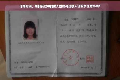 在现代社会,收入证明是办理许多事务的重要文件之一,如贷款申请、租房、签证等,有时候由于种种原因,个人无法自行开具收入证明,需要寻求他人的帮助,本文将详细介绍如何寻找他人协助开具收入证明,包括步骤、注意事项等,帮助读者顺利完成相关事务。