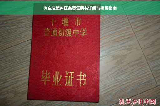 随着汽车产业的飞速发展,注塑冲压技术已成为汽车制造领域不可或缺的一环,为保证产品质量和生产安全,汽车注塑冲压备案证明书的办理显得尤为重要,本文将详细介绍汽车注塑冲压备案证明书的相关内容,帮助读者了解其作用、办理流程、所需材料以及注意事项。