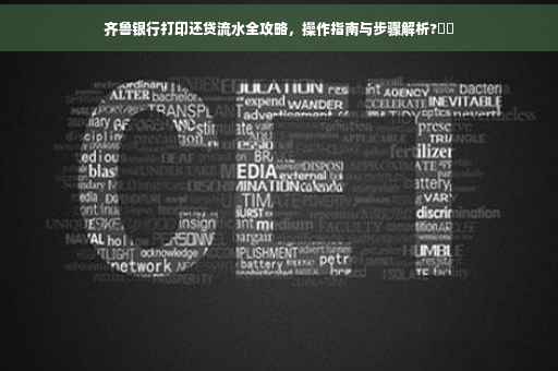 本文详细介绍了齐鲁银行打印还贷流水的全攻略,包括了解齐鲁银行、打印还贷流水的需求、操作步骤、注意事项以及常见问题及解决方案,希望本文能帮助广大客户更好地了解齐鲁银行的贷款服务及操作流程,解决实际操作中可能遇到的问题,为客户提供更便捷的金融服务体验。