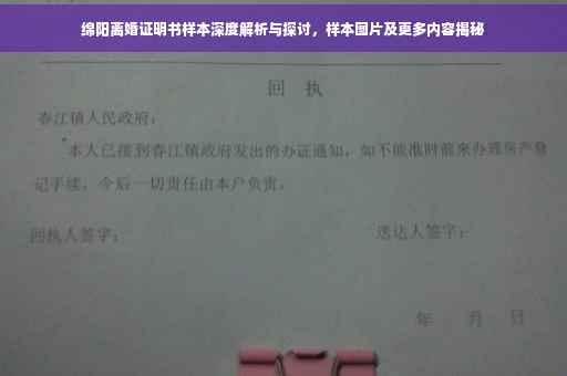 摘要:本文将解析绵阳离婚证明书样本,为读者提供样本格式和内容参考。还将深入探讨离婚证明书的重要性、制作要点及注意事项等深度内容。通过本文,读者可以了解如何正确获取和使用离婚证明书,以及需要注意的法律问题和细节。附带的图片样本将更直观地展示离婚证明书的样式和内容。