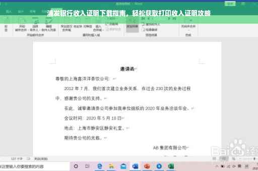 随着现代社会的发展,个人财务管理和理财规划逐渐受到越来越多人的关注,作为职场人士,了解如何获取收入证明对于处理贷款、信用卡等金融业务至关重要,本文将为您详细介绍如何通过浦发银行获取收入证明,并为您提供下载指南,助您更好地管理个人财务。