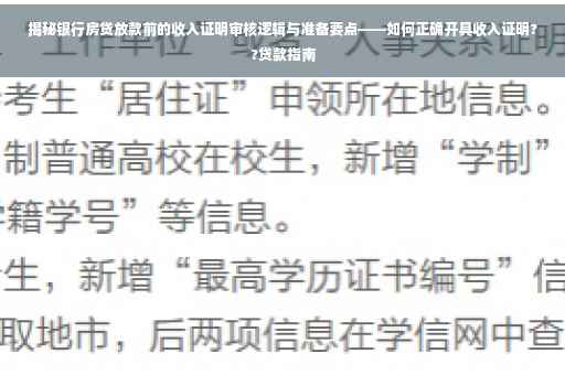 在申请房贷的过程中,收入证明是一个至关重要的环节,银行通过收入证明来评估申请人的还款能力,从而决定是否批准房贷申请,了解银行审核收入证明的逻辑和准备要点,对于顺利获得房贷放款至关重要,本文将为您详细解析房贷放款前的收入证明相关事项。