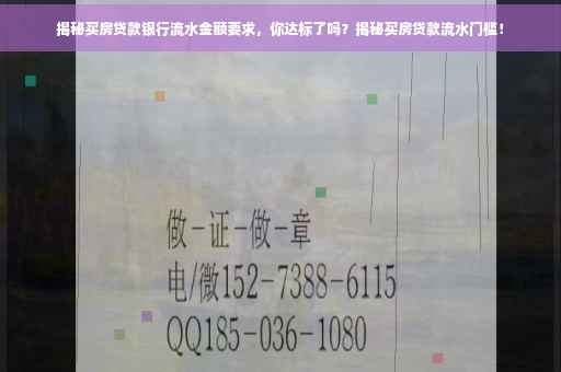 摘要:本文将揭示买房贷款时银行对流水金额的要求,帮助购房者了解银行审批贷款时关注的重点。文中将详细介绍银行流水金额的重要性,包括其作为评估还款能力关键指标的作用。还将探讨不同银行对流水金额的具体要求以及达标标准,为购房者提供有益的参考信息。