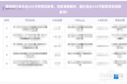 摘要:银行流水高达250万背后隐藏着许多故事和真相,涉及个人或企业的经济活动与财务状况。关于银行流水250万能否贷款20万的问题,答案并非绝对。银行流水作为贷款参考因素之一,还需结合其他条件综合评估。仅凭银行流水250万不能确定能否成功贷款20万。
