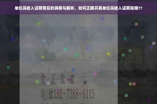 摘要:单位帮忙开具高收入证明的现象引起了广泛关注。背后的真相究竟为何?本文将深度解析这一问题,探讨单位开具高收入证明的原因和背后的考量因素。还将介绍如何合理合法地开具高收入证明,包括注意事项和流程。本文旨在帮助读者了解并正确使用高收入证明,避免不必要的误解和麻烦。