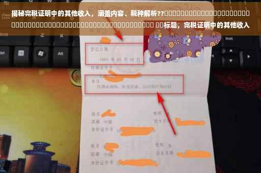 随着经济的发展和个人收入的多样化,越来越多的人开始关注自己的财务状况,其中完税证明作为个人收入纳税的重要凭证,备受瞩目,在完税证明中,有一个名为“其他收入”的项目,让许多人感到好奇,完税证明中的其他收入究竟包括哪些内容呢?本文将为您一一解析。