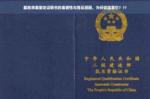 摘要:房屋鉴定证明书的重要性不容忽视。它是对房屋结构、安全性、质量等方面的专业评估,为房屋使用者和业主提供重要依据。通过鉴定,可以确保房屋符合安全标准,预防潜在风险,保护居民生命财产安全。房屋鉴定还涉及法律、交易等方面,为相关决策提供重要参考。获取房屋鉴定证明书至关重要。