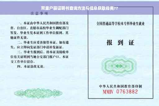 本文将详细介绍如何查询双重户籍证明书,包括了解双重户籍概念、查询的重要性、查询流程、常见问题及解决方案,阅读本文,您将能轻松获取所需信息,解决关于双重户籍证明书的查询问题。