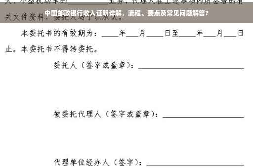 在当今社会,个人收入证明在办理各类金融业务、申请贷款或信用卡等场合扮演着重要角色,作为国内领先的金融机构之一,中国邮政银行的收入证明具有极高的信誉度和认可度,本文将为您详细介绍中国邮政银行收入证明的开具流程、要点及常见问题的解决方法,助您更好地了解和使用这一服务。