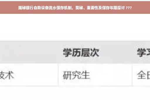 摘要:银行自助设备的流水保存是银行业务的重要环节,其保存年限具有严格规定。这些流水的保存对于保障银行业务的透明性、客户资金安全以及解决可能的纠纷至关重要。本文将探讨银行自助设备流水保存的奥秘,包括其保存期限的重要性,以及为何妥善保存这些记录对于银行和客户双方都是不可或缺的。
