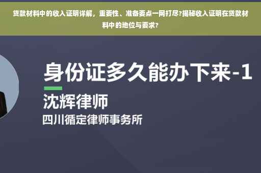 了解贷款材料中的收入证明的重要性及其准备要点,对于顺利申请贷款至关重要,在申请贷款前,务必充分准备相关材料,确保信息的真实性和完整性,以提升贷款申请的成功率。