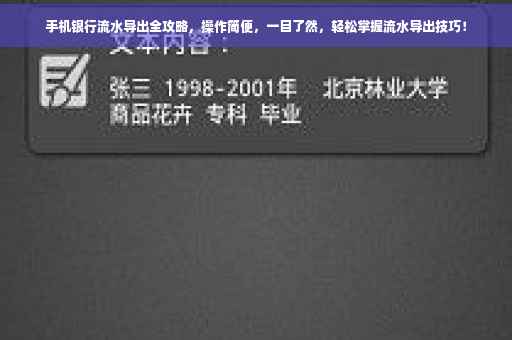 随着移动互联网的发展,银行业务逐渐从线下转向线上,手机银行作为我们日常生活中的得力助手,已经深入人们的生活,导出银行流水这一功能,对于个人理财、企业运营等方面尤为重要,本文将详细介绍如何通过手机银行轻松导出流水记录,让您一目了然地掌握自己的财务情况。