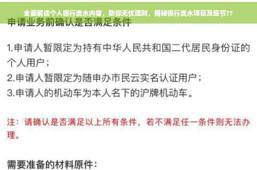 摘要:本文将揭秘个人银行流水的内容,全面解读银行流水中的各项项目,助你更好地管理个人财务,实现理财无忧。文章将介绍银行流水包含的主要项目,如收入、支出、转账、存款等,帮助读者了解银行流水的构成,从而更好地掌握个人财务状况。