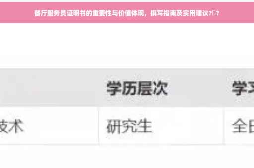 随着社会的快速发展,服务行业逐渐成为国民经济的重要支柱之一,餐饮业作为服务行业的重要组成部分,对于提升人民群众的生活品质起到了重要作用,在餐厅中,服务员作为一线工作人员,承担着为顾客提供优质服务的重要职责,为了更好地展现餐厅服务员的专业素养和能力,餐厅服务员证明书应运而生,本文将详细介绍餐厅服务员证明书的重要性及其价值体现。
