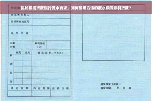 随着房价的不断上涨,越来越多的人选择通过按揭贷款购买房屋,而在申请按揭贷款时,银行流水成为了评估贷款申请人还款能力的重要依据之一,究竟需要多少银行流水才能顺利申请按揭贷款呢?本文将从多个方面对此进行解析。
