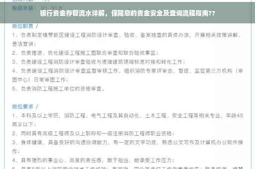 随着互联网金融的飞速发展,越来越多的人选择将资金存入银行进行理财或投资,如何确保这些资金的安全成为了大家关注的焦点问题,银行资金存管作为一种有效的手段,能够保障客户的资金安全,防止被非法挪用,本文将详细介绍银行资金存管及其流水的重要性,帮助大家更好地了解如何确保个人资金安全。