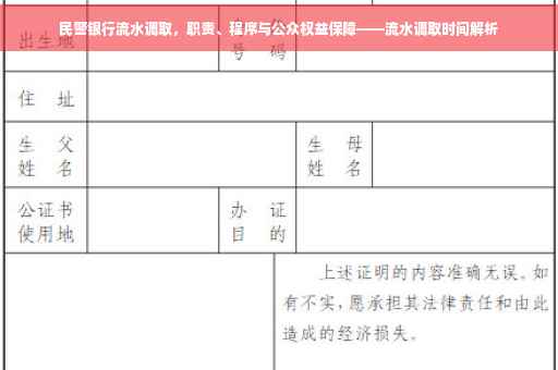 随着社会的不断发展,金融领域的监管日益受到重视,作为维护社会治安的重要力量,民警在执行公务过程中,有时需要前往银行调取流水信息,本文将围绕这一主题,探讨民警在银行调取流水的职责、程序以及公众权益保障等问题。