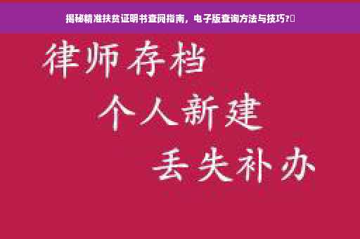 随着国家脱贫攻坚政策的深入推进,越来越多的人受益于精准扶贫政策,而精准扶贫证明书作为证明个人或家庭享受政策的重要依据,其查阅方式对于受益者来说显得尤为重要,本文将详细介绍如何查阅精准扶贫证明书,帮助读者更好地了解自己的权益,保障自身合法权益。