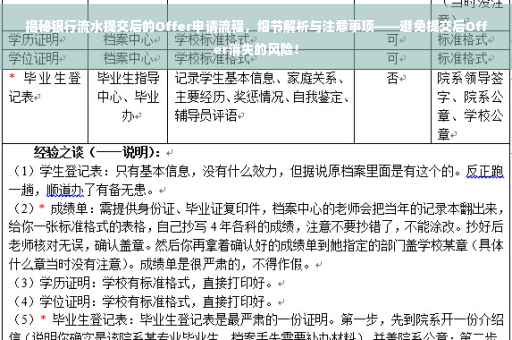 提交银行流水是offer申请流程中的重要环节,本文详细介绍了提交银行流水后的流程、注意事项及常见问题解答,希望能为申请者提供帮助,在申请过程中,申请者需保持警惕,遵循规范操作,以确保顺利获得offer。
