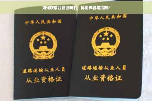 获取台籍证明书是涉及台湾相关事务的重要步骤,本文详细介绍了台籍证明书的获取方法、注意事项以及常见问题解答,希望能帮助读者顺利完成相关手续,如有更多疑问,请咨询当地相关部门或机构。
