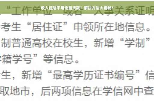 随着社会的不断发展,越来越多的人开始关注个人财务管理和理财规划,在这个过程中,贷款成为了许多人实现财务目标的重要手段之一,有些人却因为收入证明不多而面临贷款难题,收入证明不多就真的不能贷款吗?本文将从多个方面探讨这一问题。