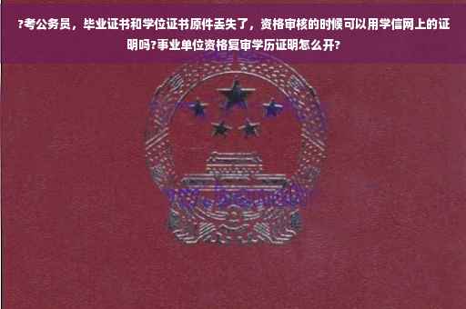 在公务员考试的资格复审环节,需要考生出具毕业证和学位证及相关证件的原件。 如果原件遗失,必须到原毕业学校补办,毕业证明书是在宣布毕业证原件丢失作废后补办的毕业证书,两者效力一样,法律上没有差别。 建议提前和审核的用人单位或者人事部门好好沟通说明情况。