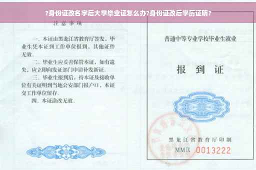 改名字后身份证与毕业证的名字不一致,毕业证不可以改名,但可以让公安出具证明这两个名字系同一个人。