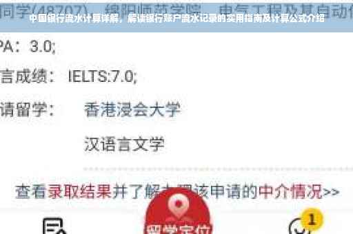 在当今社会,随着金融行业的快速发展,越来越多的人开始关注自己的财务状况,作为国家的四大银行之一,中国银行在国民生活中扮演着重要角色,对于个人和企业来说,了解如何计算中国银行流水,不仅能帮助我们更好地管理资金,还能为财务规划提供重要依据,本文将详细介绍中国银行流水的计算方法,帮助读者正确解读银行账户流水记录。
